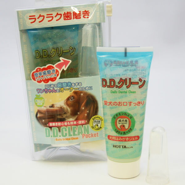 D.D. クリーンポケット 『愛犬のお口すっきり!!』◎ D.D.クリーン ポケット アダルト用 価格: 997円 レビュー評価: 4.0 レビュー数:1 携帯・保管に便利なポーチに、ソフトブラシと手袋をセット。青りんご味のジェルは成長に合わせて三種類を用意しています。幼犬期の成長に必要なカルシウム、成犬期の皮膚や粘膜の健康維持に必要なビタミンB6、老犬期のカルシウム吸収力低下を助けるビタミンD3をそれぞれ配合。ソフトブラシは柔らかな樹脂素材を使用。適度に指にフィットし、細かい部分まで磨きやすくなっています。手袋は直接わんちゃんの口の中もマッサージ。ソフトブラシから始めて歯磨き習慣をつけましょう。D.D.クリーンポケット【成犬用】 ビタミンB6入り 【内容】はみがきジェル70g・ソフトブラシ1個・手袋1枚 透明ポーチ入り Supported by 楽天ウェブサービス |