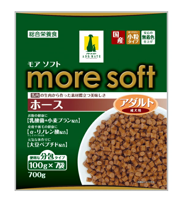 アドメイト モアソフト -ホース- アダルト(成犬用) 700g 価格: 1,940円 レビュー評価: 5.0 レビュー数:1 【成犬用総合栄養食/半生タイプ】動物性食物アレルゲンが気になる成犬に、良質なたん白質が豊富で低脂肪、さらにビタミンや鉄分などがパランスよく含まれる馬肉を使用!安心の無着色仕上げ!小粒タイプ。いつでも新鮮な分包タイプ(100g×7袋)です!■原材料:馬肉、小麦粉、でんぷん、植物性たん白質(大豆・小麦)、小麦ブラン、植物油、乳酸菌(ラクリス)、大豆ペプチド、しそオイル、オリゴ糖、ソルビトール、グリセリン、プロピレングリコール、、ミネラル類(カルシウム・リン・塩素・カリウム・マンガン・亜鉛・鉄・銅・ヨウ素・コバルト・ケイ素)、リン酸Na、保存料(ソルビン酸K)、酸化防止剤(エリソルビン酸Na)、ビタ Supported by 楽天ウェブサービス |